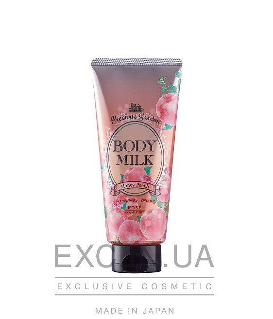 Kose Precious Garden Body Milk (Honey Peach) - молочко для тела, которое насыщает его влагой и тонизирует, питает полезными витаминами и макроэлементами. Благодаря применению молочка для тела появляется приятное ощущение увлажненности и насыщенности кожи, которое сохраняется до следующего применения.