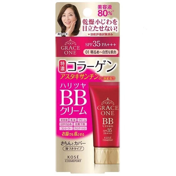 Многофункциональный крем Kose Grace One BB Cream SPF 35 PA+++ сочетает в себе действие 7-ми продуктов: эссенция, эмульсия, уходовый крем, тональный крем, основа под макияж, консиллер и защита от солнца.