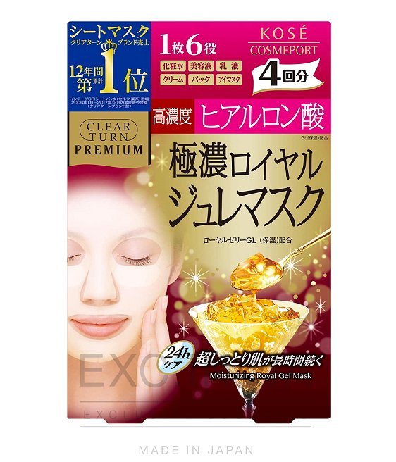 Стоит отметить невероятную эффективность масок с гиалуроновой кислотной и маточным молочком Kose Clear Turn Premium. Кожа выглядит намного более здоровой и увлажнённой уже с первых применений. Для лучшего результата рекомендуем использовать маски 1-2 раза в неделю.